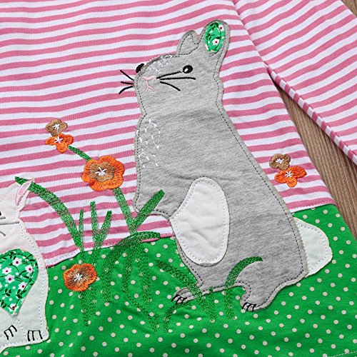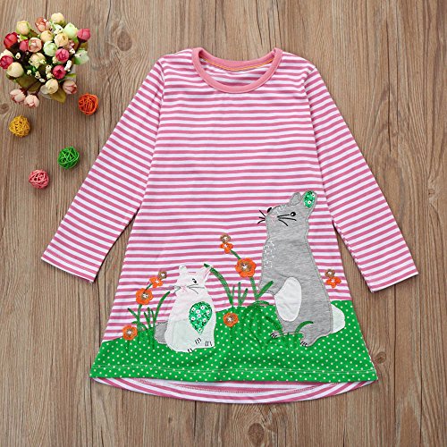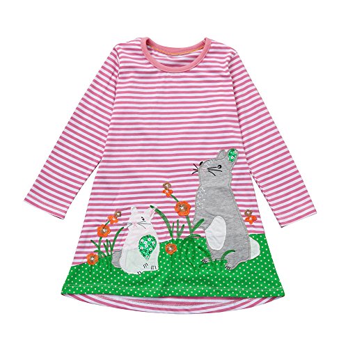 (プタス)Putars ベビー服 子供服 女の子 ワンピース ストライプ柄 動物柄 刺繍 可愛い 秋冬 旅行 記念日 プレゼント 1-6歳