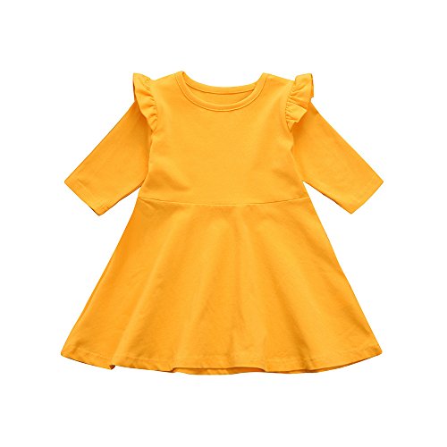 (プタス)Putars ベビー服 子供服 ワンピース 女の子 黄色い フリル シンプル イエロー 可愛い 記念日 プレゼント 12ヶ月-4歳