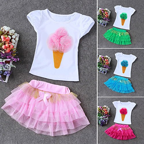 (プタス)Putars ベビー服 子供服 上下セット Tシャツ チュールスカート 女の子 アイスクリーム柄 四色 可愛い パーティー 記念日 プレゼント 12ヶ月-6歳