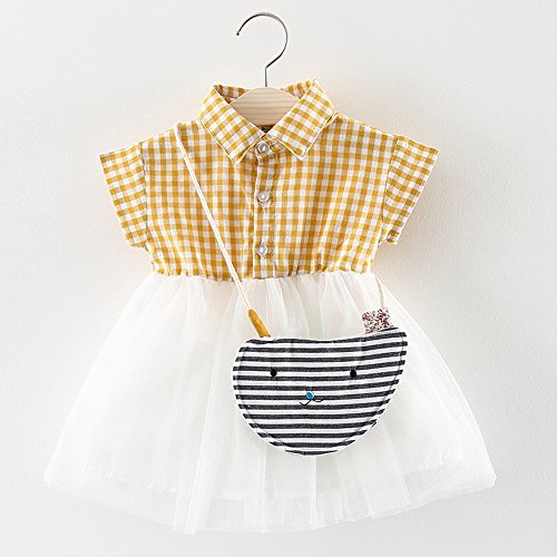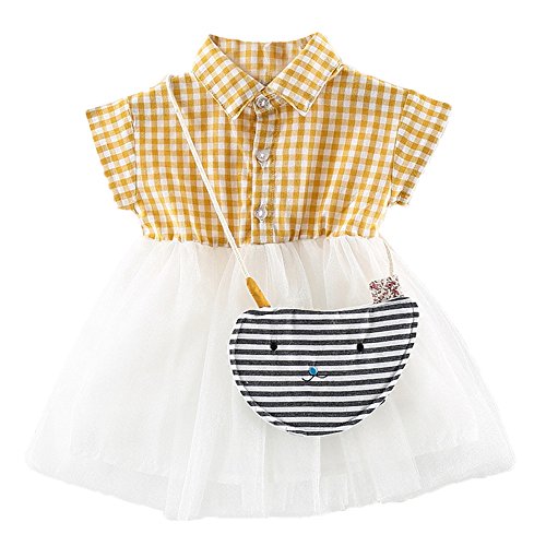 (プタス)Putars幼児の赤ちゃんの女の子の綿の半袖のチェック柄の服のパーティープリンセスドレスセット6ヶ月 - 24ヶ月