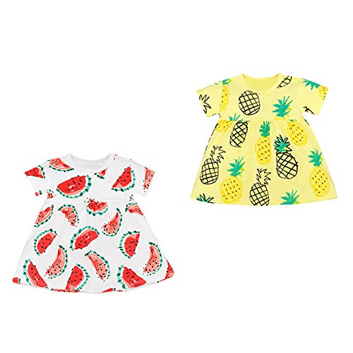 (プタス)Putarsベビーガールズコットンプリンセスフルーツプリント半袖ワンピースカジュアルスカート12ヶ月 - 3歳