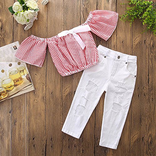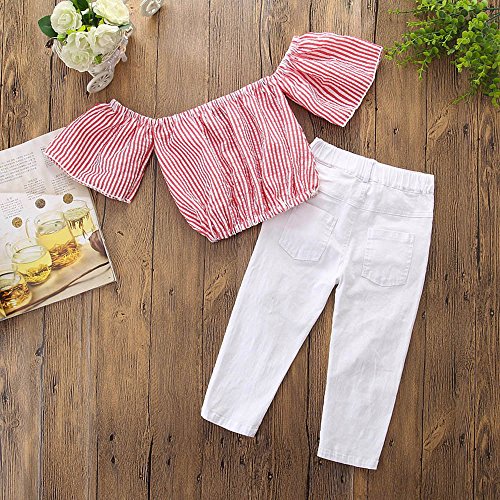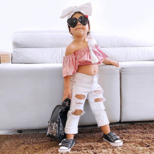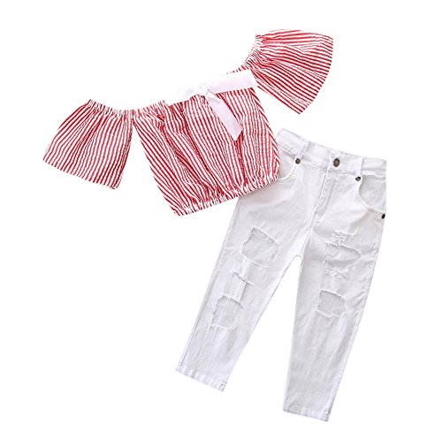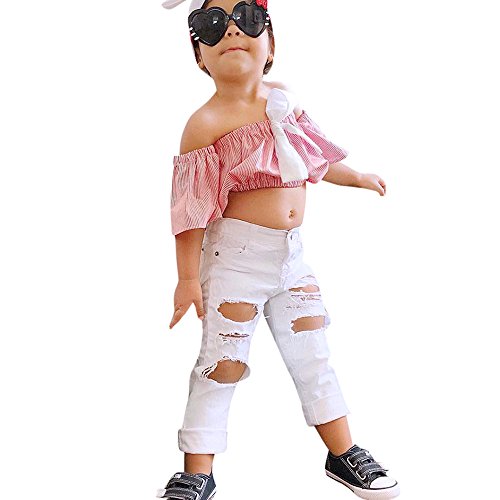 (プタス)Putars幼児の赤ちゃんの女の子の2PCSコットンストライプトップス+デニムパンツの服装12ヶ月〜4歳
