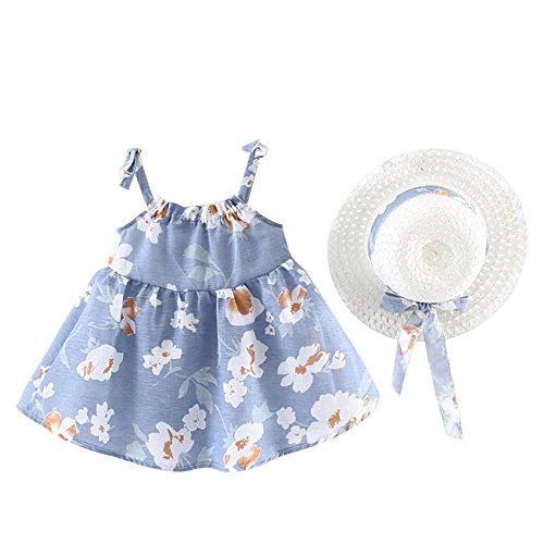 (プタス)Putars幼児の赤ちゃんの女の子のコットンノースリーブフラワーの服パーティープリンセスの帽子と帽子6ヶ月 - 24ヶ月