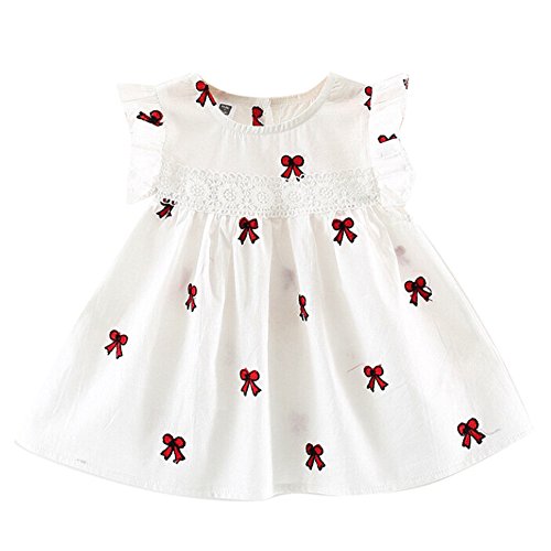(プタス)Putars幼児の赤ちゃんの女の子のコットンノースリーブちょう結び服パーティープリンセスワンピースのカジュアルスカート6ヶ月 - 24ヶ月