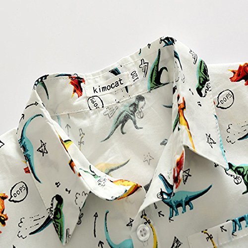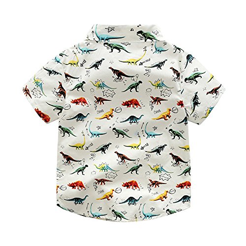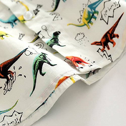 (プタス) Putarsティーンエイジャーの服の綿の夏の白い恐竜の花の半袖の西洋の通気性のシャツトップボーイの服 3歳 - 7歳