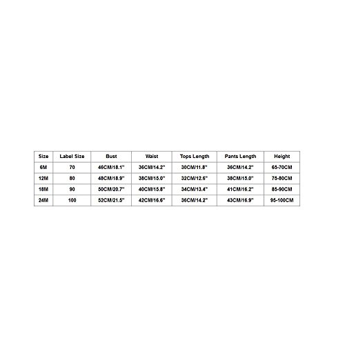 ♪推奨年齢:6ヶ月 サイズ:70 バスト: 46CM/18.1" トップスの長さ: 30CM/11.8" ウエスト: 36CM/14.2" パンツの長さ:36CM/14.2" 身長:65-70CM