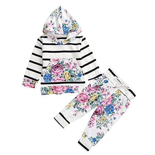 (プタス) Putars子供の秋と冬の白いセーターストライプのコート花プリントスポーツウェアホーム服キャンプ6ヶ月〜24ヶ月