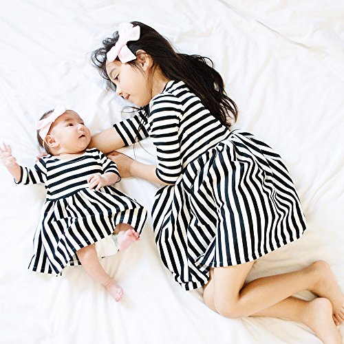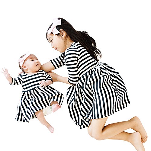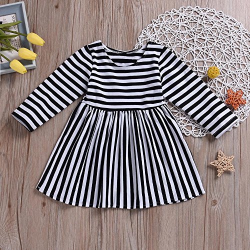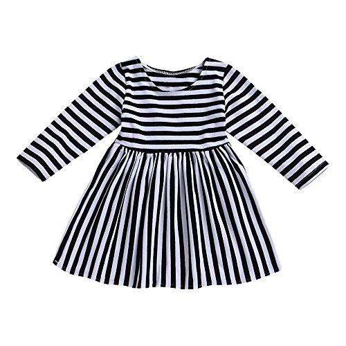 (プタス) Putars 幼児の女の子ロングスリーブコットンストライプカジュアルドレス 12ヶ月 - 4歳