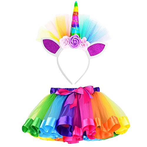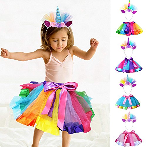 (プタス) Putars 女の子かわいい虹レイヤードチュチュスカートパーティーダンス+ヘアバンドバレエの衣装 4歳-10歳