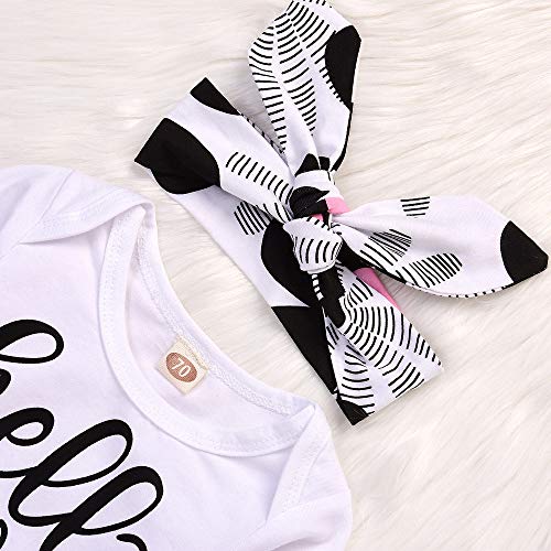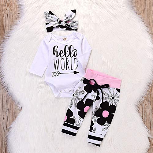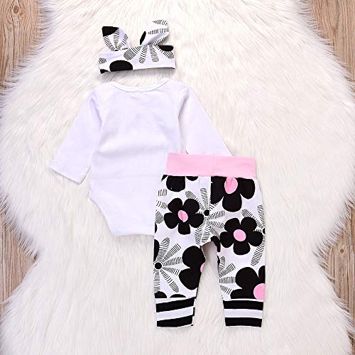 (プタス) Putars 幼児ガールズボーイズ長袖レター花プリントロンパー+パンツ+ヘッドバンド 6ヶ月-24ヶ月