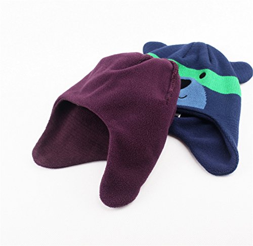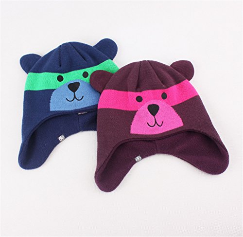 QD-SGMP 秋冬 帽子 赤ちゃん ベビー ニット帽 1-2歳 あったか おしゃれ 可愛い 耳付き 熊 出産祝い 防寒グッズ(ネービー)