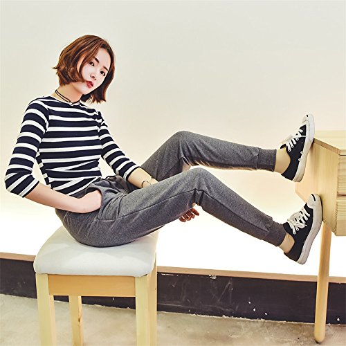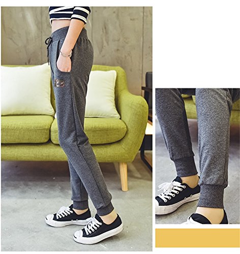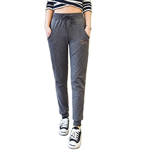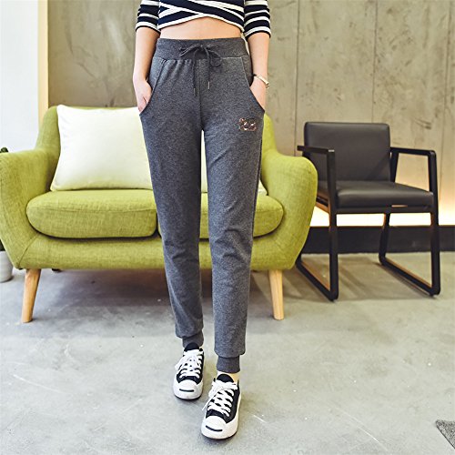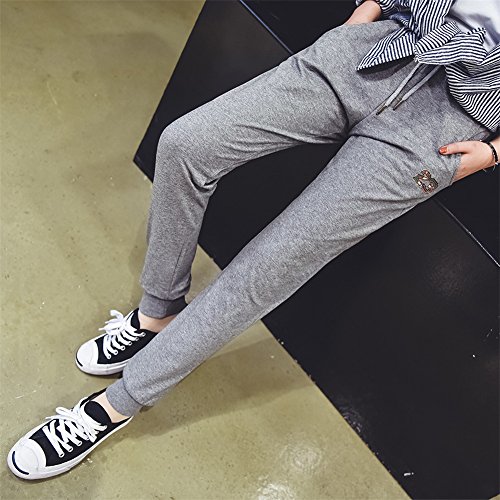 QD-SGMP ロングパンツ レディース 春 夏 無地 カジュアル おしゃれ 長ズボン 紐付き 着痩せ 数字 アップリケ ブラック グレー 2色(グレー/M)