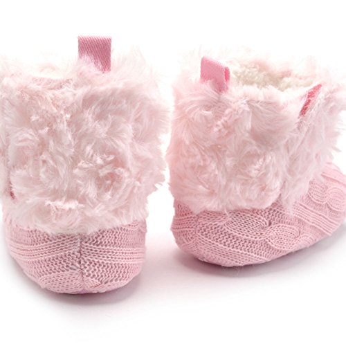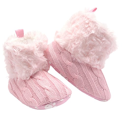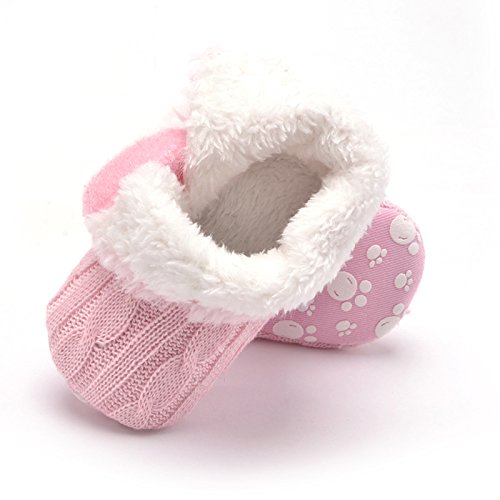 QIAONAI 赤ちゃん 可愛い靴 ベビーシューズ ファーストシューズ 歩行練習靴 もこもこ ニート 裏起毛 暖かい 柔らかい底 滑り止め ベビーシューズ 幼児用 ウールの靴 冬 出産祝い (S, ピンク)