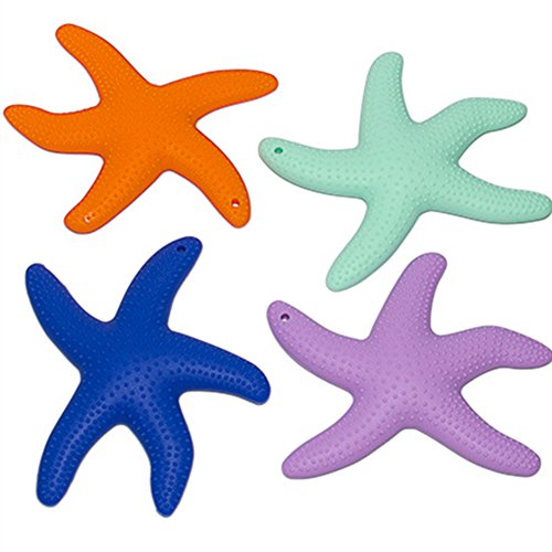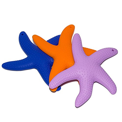 QIAONAI 赤ちゃん ベビー 歯固め おしゃぶり 食品グレード シリコーン 歯がため 臼歯 おもちゃ ヒトデ 出産祝い 誕生日 安全 おもちゃ 知育玩具 4色 (ブルー)