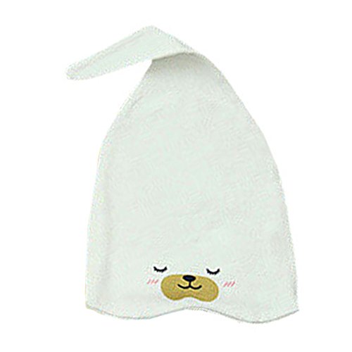 QIAONAI ベビー帽子 ニットキャップ ハット 眠ている帽子 とんがり くまさんプリント帽子 新生児 ベビー 赤ちゃん 綿 ツイスト 出産祝い シンプル 可愛い 無地 春 秋 冬 (ホワイト)