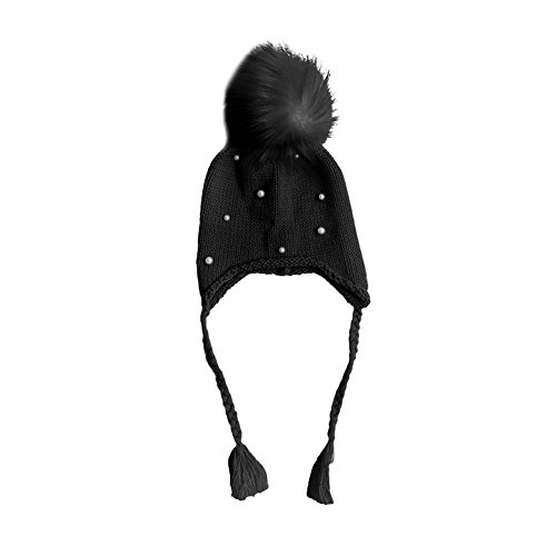 QIAONAI ベビー帽子 ニット帽子 赤ちゃん ボンボン ニットハット 可愛い 耳保護 防寒 男の子 女の子 キッズ 子供秋冬用 出産祝い 新生児 キッズ 子供 秋冬 (S, ブラック)