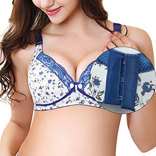QIAONAI マタニティブラジャー ママ 授乳ブラジャー 授乳ブラ ホック式 前開き ノンワイヤー 着地いい 花柄 可愛い 産前産後兼用 授乳便利 (75D, ブルー)