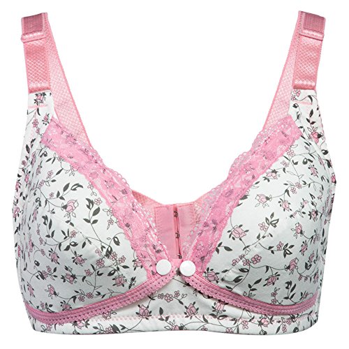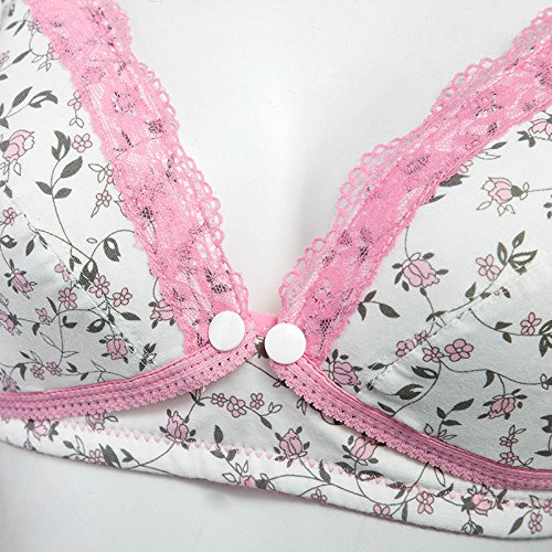 QIAONAI マタニティブラジャー ママ 授乳ブラジャー 授乳ブラ ホック式 前開き ノンワイヤー 着地いい 花柄 可愛い 産前産後兼用 授乳便利 (75D, ピンク)