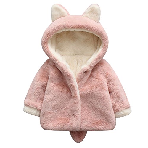 QIAONAI 兎の耳 ベビー服 女の子 コート 子供ケープ 女の子 赤ちゃん服 ベビー服 フード付き 尻尾 兎の耳 裏起毛 防寒 ふわふわ 暖かい アウターウェア ソフト カバーオール 子供服 満月/出産祝い/プレゼント 80CM-90CM-100CM-110CM-120CM (110cm, ピンク)