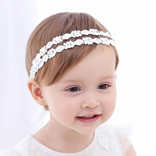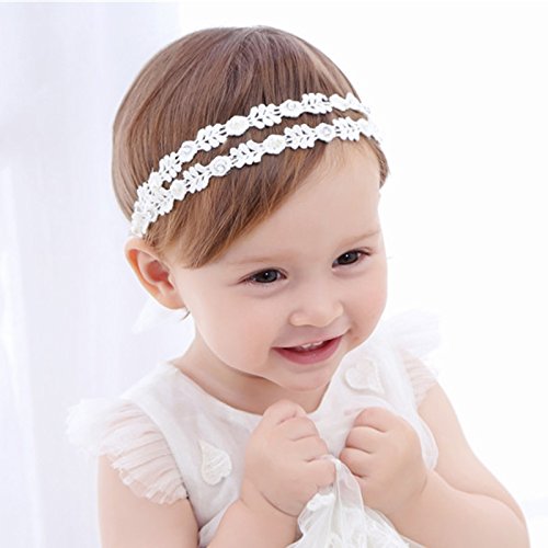 QIAONAI 可愛い ベビー用ヘアバンド ヘアアクセサリー 髪飾り レース柄 リボン 出産祝い 結婚式 誕生日 お食い初め 子供髪飾り キッズ ヘアアクセサリー ヘッドドレス フォーマル 韓国風 ホワイト