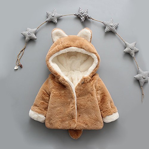 QIAONAI 兎の耳 ベビー服 女の子 コート 子供ケープ 女の子 赤ちゃん服 ベビー服 フード付き 尻尾 兎の耳 裏起毛 防寒 ふわふわ 暖かい アウターウェア ソフト カバーオール 子供服 満月/出産祝い/プレゼント 80CM-90CM-100CM-110CM-120CM (100cm, カーキ色)