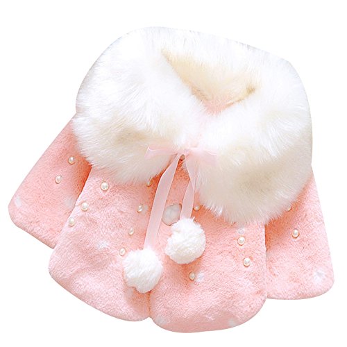 QIAONAI ベビー服 女の子 コート 子供ケープ 女の子 赤ちゃん服 ベビー服 フード付き 防寒 ふわふわ 暖かい ファー襟 リボン アウターウェア ソフト カバーオール 子供服 満月/出産祝い/プレゼント70CM-80CM-90CM-100CM (70cm, ピンク)