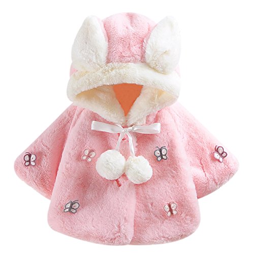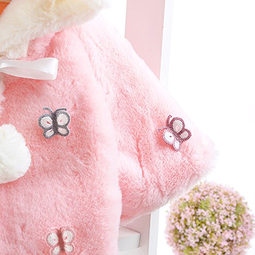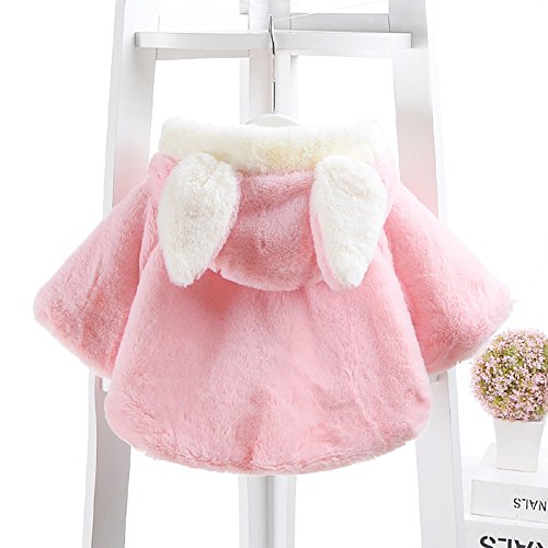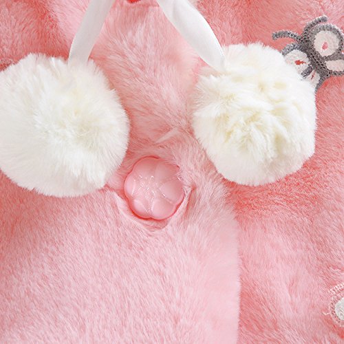 QIAONAI ベビー服 子供ケープ 女の子コート 赤ちゃん服 ベビー服 うさぎの耳 フード付き 防寒 ふわふわ 暖かい アウターウェア ソフト カバーオール 子供服 着脱やすい 満月/出産祝い/プレゼント70CM-80CM-90CM-100CM (80cm, ピンク)