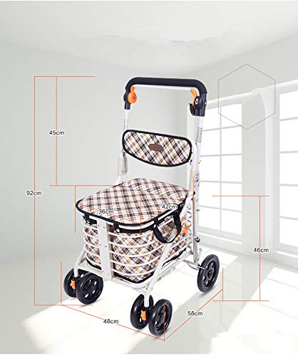 高齢者ポータブルショッピングトロリー折り畳み式4輪ウォーカーブレーキ、360度回転ホイールと大容量防水ショッピングバッグ