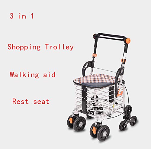 ポータブル高齢者ショッピングトロリー軽量アルミ歩行補助シートブレーキと簡単に階段を登る