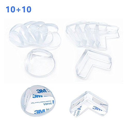 20個セット(L型10個、丸型10個) 家具コーナーガード 赤ちゃん/子供/年配の方ケガ防止 3M両面テープ付き 透明で柔らかい