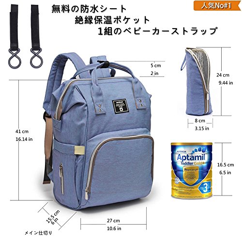 - 「ハンズフリー」パディング付きの肩紐とベビーカーストラップをご利用してハンズフリーになり楽です!オフ・ オンとも使える大容量のママバッグは旅行、お買い物、レジャーに大活躍のバッグです。