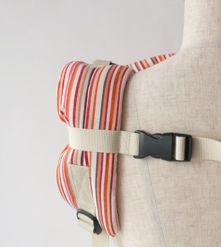 ママやパパの肩・腰の負担が軽くなるように幅広で厚めのショルダーパッドとウエストパッドを採用。