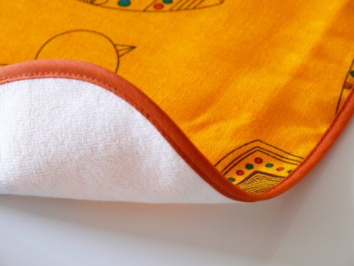 裏地は優しい肌ざわりのパイル地。綿100%で、家庭用品規制法の乳幼児繊維製品基準をクリアした日本製の生地です。