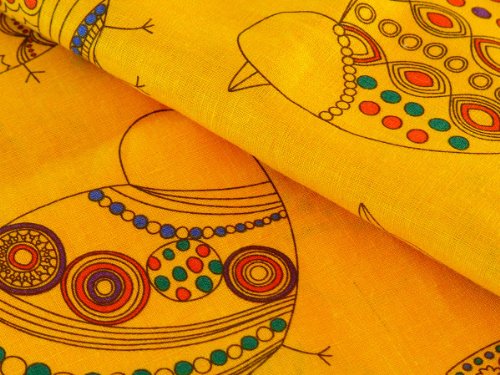 きれいな色がちりばめられたユーモラスなタッチの小鳥のデザインです。