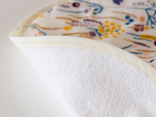 [特徴]:北海道在住で「点と線 模様製作所」の代表、岡理恵子さんとのコラボレーションアイテムのガーゼスタイです。普段の生活で目にした風景や記憶の中にある情景などを題材とした優しいタッチのイラストがかわいらしく、ギフトにもぴったりです。 40番の糸で二重におりあげたガーゼ素材に、繊維を揉みほぐすタンブラー加工を施して、ふっくらと柔らかな風合いに仕上げました。よだれや食べこぼしもしみにくい2重構造になっており、裏面には赤ちゃんに優しい国産の綿パイルを使用しています。同じ柄のブルマとセットでお使いいただいても◎。出産祝いにも喜ばれるアイテムです。
