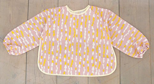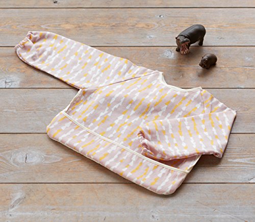- 手掴み食べが始まった頃、お洋服を汚さないために使うのに、おすすめ。袖口がゴム仕様なので袖がばたつかず、赤ちゃんのお洋服をしっかり守ってくれます。かわいいデザインはお出かけ用にもぴったり。ポケットを裏側に返せば、スモックとしても使えます。マジックテープで簡単に付け外しができます。おもて生地は二重織りのガーゼ素材。
