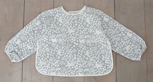 - 手掴み食べが始まった頃、お洋服を汚さないために使うのに、おすすめ。袖口がゴム仕様なので袖がばたつかず、赤ちゃんのお洋服をしっかり守ってくれます。かわいいデザインはお出かけ用にもぴったり。ポケットを裏側に返せば、スモックとしても使えます。マジックテープで簡単に付け外しができます。おもて生地は二重織りのガーゼ素材。