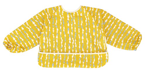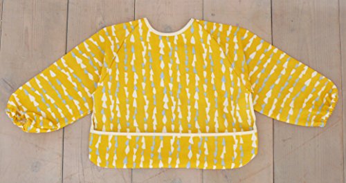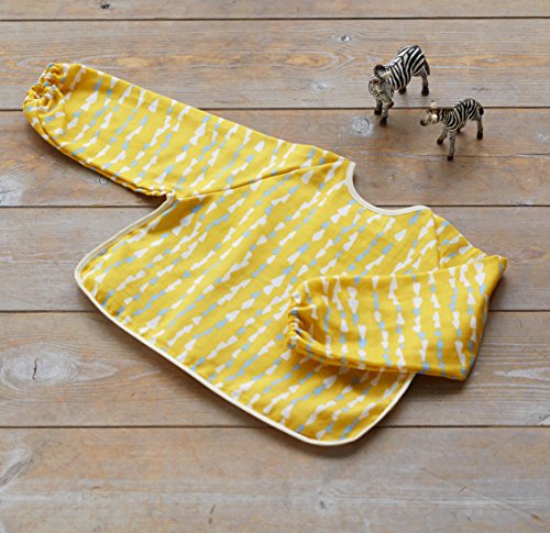 - 手掴み食べが始まった頃、お洋服を汚さないために使うのに、おすすめ。袖口がゴム仕様なので袖がばたつかず、赤ちゃんのお洋服をしっかり守ってくれます。かわいいデザインはお出かけ用にもぴったり。ポケットを裏側に返せば、スモックとしても使えます。マジックテープで簡単に付け外しができます。おもて生地は二重織りのガーゼ素材。