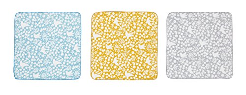 Rieko Oka(岡 理恵子) ミニハンカチ 3枚セット 小鳥(グレー・イエロー・ブルー) 日本製