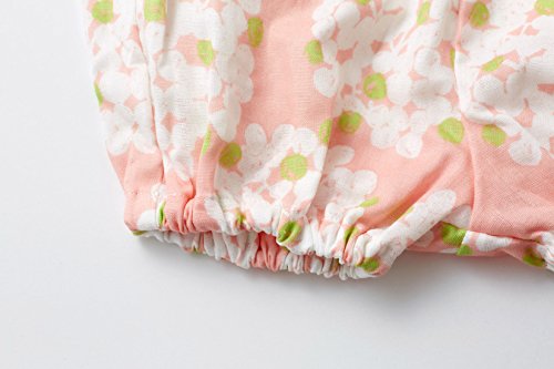 - 二重織りのガーゼ素材。二重織のため空気の層ができて、通気性・吸水性があります。夏は涼しく冬は適度な保湿性があるので赤ちゃんのお肌にやさしく、季節を問わずに使えます。おむつの上から履けるブルマパンツは、0歳から使えるフリーサイズ。