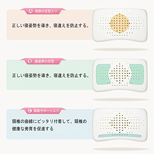 - 「斜頭や絶壁頭防止・頭形がよくなる」球面の設計により、真ん中がく窪んでいるので、赤ちゃんの頭がずり落ちにくいだけではなく、寝返りを打っても自然に赤ちゃんの頭を真ん中へ導いてくれ、偏った寝癖による頭の変形を予防し、理想的な頭の形状を形成するサポートをいたします。