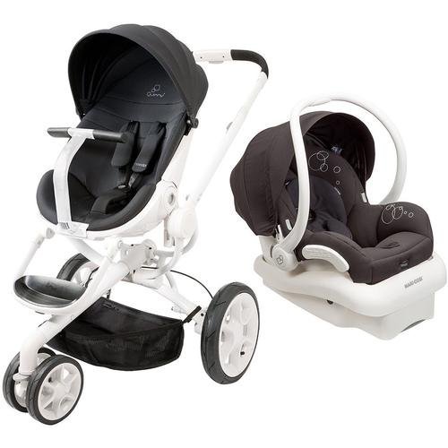 This Kit comes with Moodd Stroller (Black Irony), Maxi Cosi infant Car Seat (Black Irony), 1 Car Seat Base;The new Quinny Moodd is poetry in motion. This ultra modern and complete pushchair system offers the flexibility to get the most out of your day, everyday. Its easy to fold for compact transportation and at the push of a button, it automatically unfolds in seconds. Adaptable, complete and stylish, youll always be able to go wherever the Quinny Moodd takes you, your way.;The Maxi-Cosi Mico AP is a rear-facing only car seat suitable for infants from 5 to 22 pounds and 19 to 29 inches tall. Most safety experts agree that newborns are best protected in rear-facing only seats, rather than those that convert from rear to forward facing. Rear-facing only car seats are better suited for a smaller body and allow the baby to travel in a semi-reclined position, relieving pressure on the spine and neck.;Moodd Stroller Travel System in Black Irony