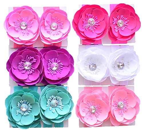 Material: cloth ,Crystal, Chiffon.;Size: Flower Approx 3 inch, Suitable for 0-6 year Baby;Wonderful gift for your friend who has a baby;Package includes: 6 Pairs Barefoot Flower