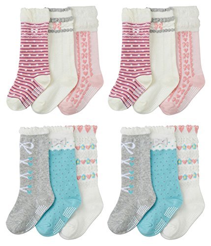Qandsweet 6ペアベビーガールズニーハイソックス幼児用プリンセスキュート滑り止めソックス8 – 36 M カラー: マルチカラー