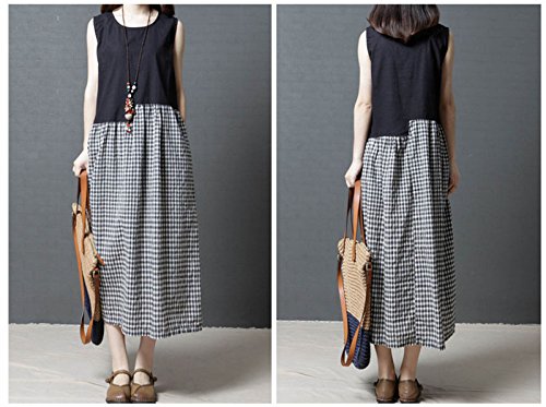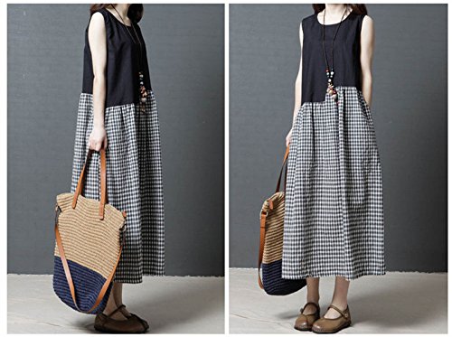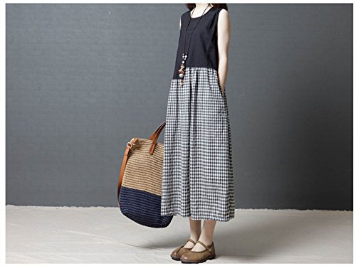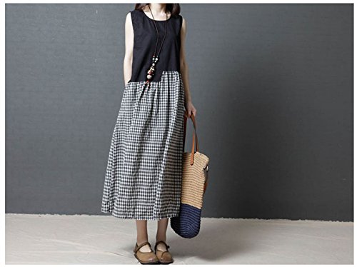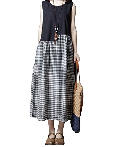 (キュミオ) QeMIO ワンピース レディース aライン ロングワンピース 着痩せ 体型カバー ゆったり チェック柄 春 夏 秋用 無地 リネン 麻 大きいサイズ マタニティワンピース 大人 可愛い 森ガール