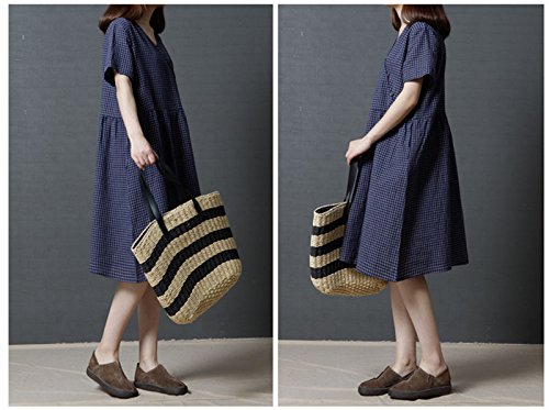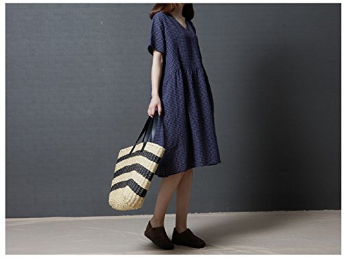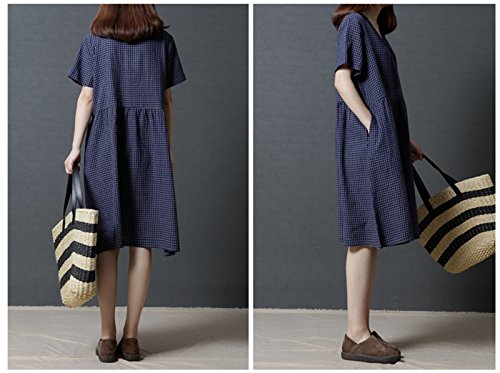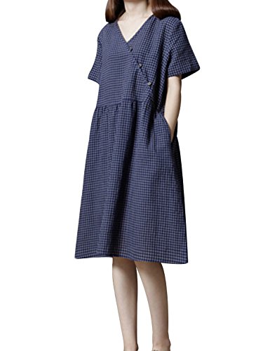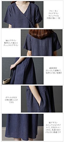 (キュミオ) QeMIO ワンピース レディース aライン Vネック 着痩せ 体型カバー ミニ丈 ゆったり 春 夏 秋用 リネン 麻 コットン 半袖 両側ポケット 大きいサイズ マタニティワンピース 大人 可愛い 森ガール