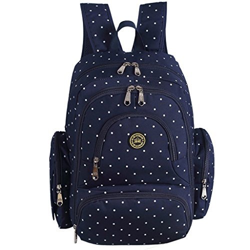 QiMiaoBaBy Diaper Bag Smart Organizer Waterproof Travel Diaper Backpack Handbag with Changing Pad and Stroller Clips (BlueDot)