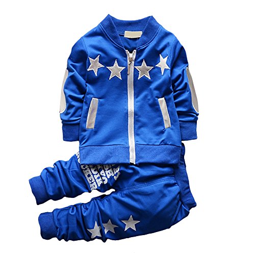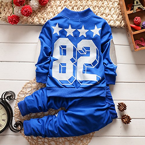 QIAONAI キッズ ボーイズ ジャージ ベビー 赤ちゃん スポーツウェア トップス+ズボン 上下2点セット 長袖 スウェット 男の子 活力 元気満々 春秋 80 90 100 110cm (80, ブルー)