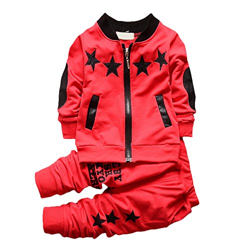 QIAONAI キッズ ボーイズ ジャージ ベビー 赤ちゃん スポーツウェア トップス+ズボン 上下2点セット 長袖 スウェット 男の子 活力 元気満々 春秋 80 90 100 110cm (90, レッド)