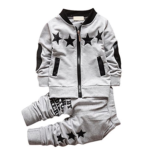 QIAONAI キッズ ボーイズ ジャージ ベビー 赤ちゃん スポーツウェア トップス+ズボン 上下2点セット 長袖 スウェット 男の子 活力 元気満々 春秋 80 90 100 110cm (100, グレー)